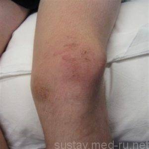 - нередко травма сопровождается и гемартрозом, если затронуты красные участки хряща.